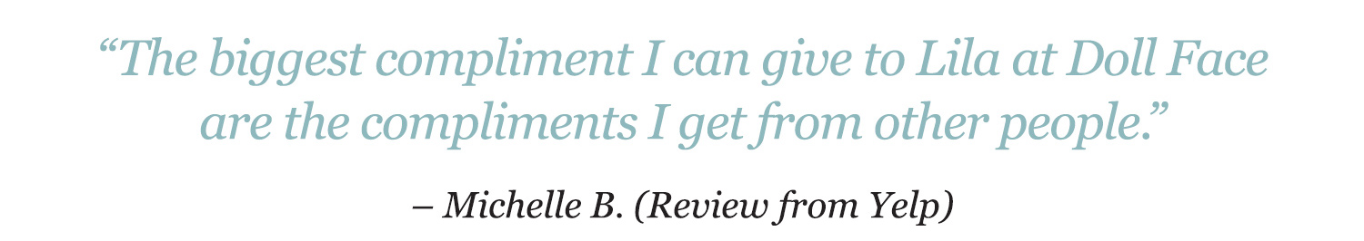 "I have been seeing Lila for years and I can tell you first-hand that you will not find a better esthetician in this town."